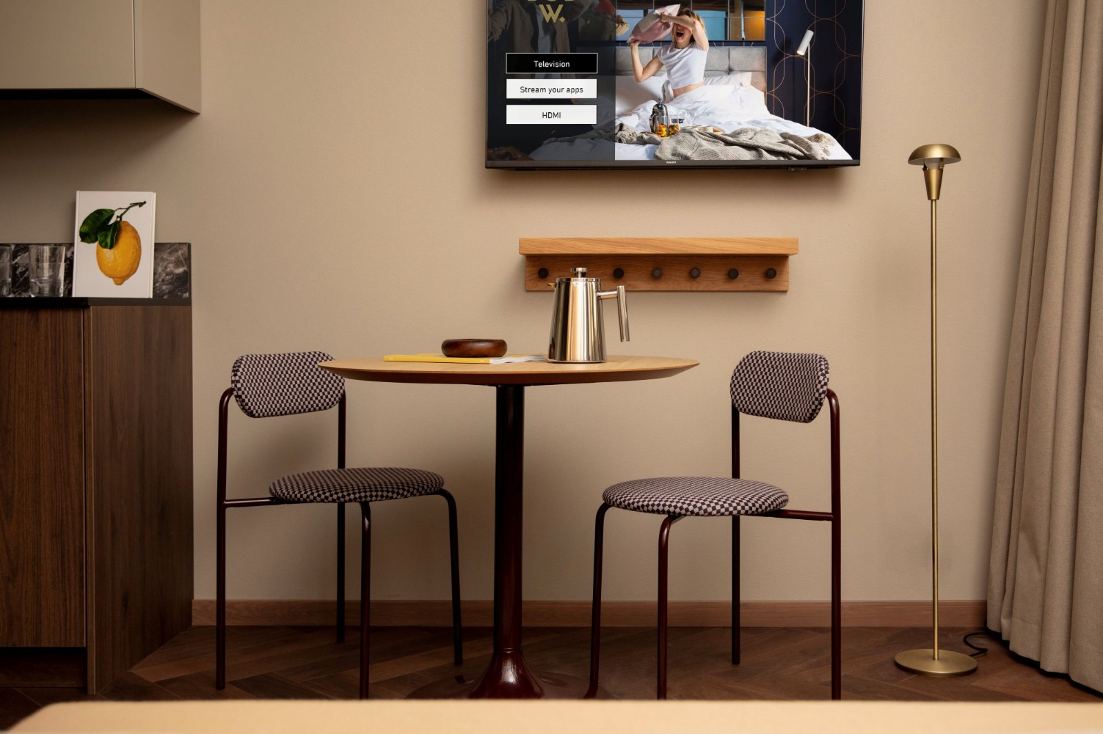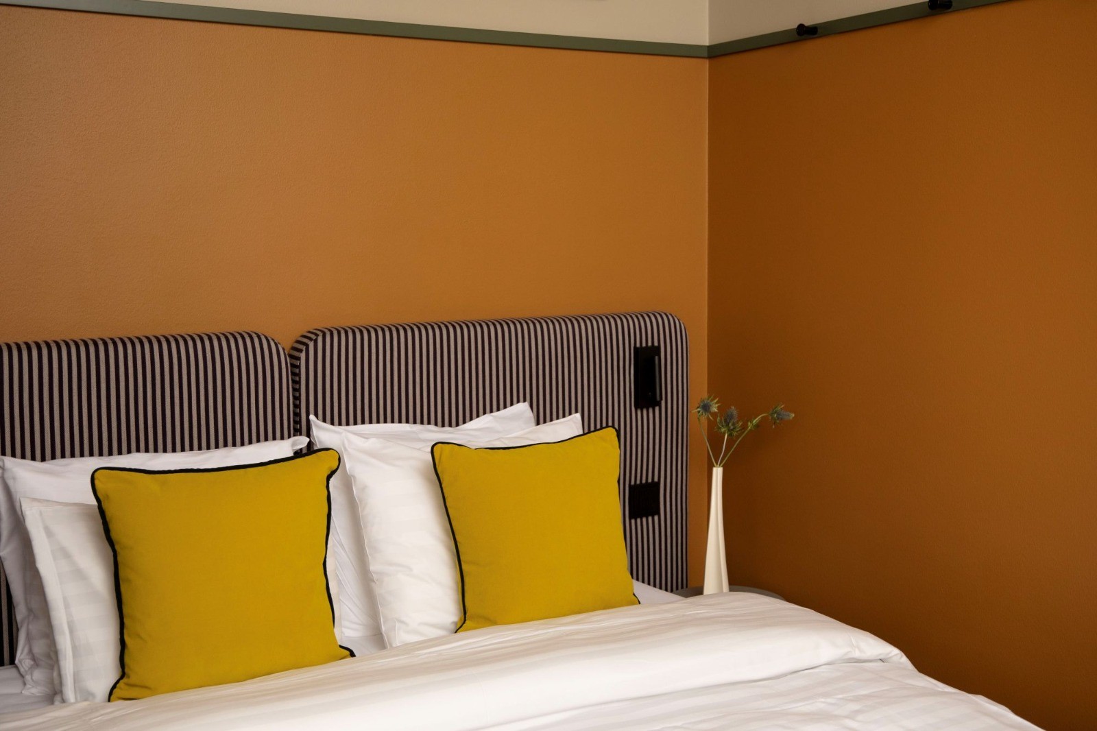 Majoitusyritys Bob W:n Helsingin Kaartin kohten sisustuksessa käytettiin Annalassa kudottuja kankaita. Suunnittelusta vastasi suunnittelutoimisto Koko 3. Kuvat: Bob W 2024