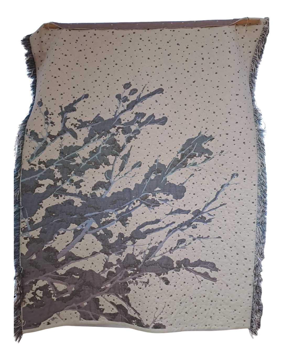 Annalan talvikaudelle kutoma vuodenaikapeitto, jonka luminen tunnelma tuo talven kotiin vaikka ulkona sataisi räntää.